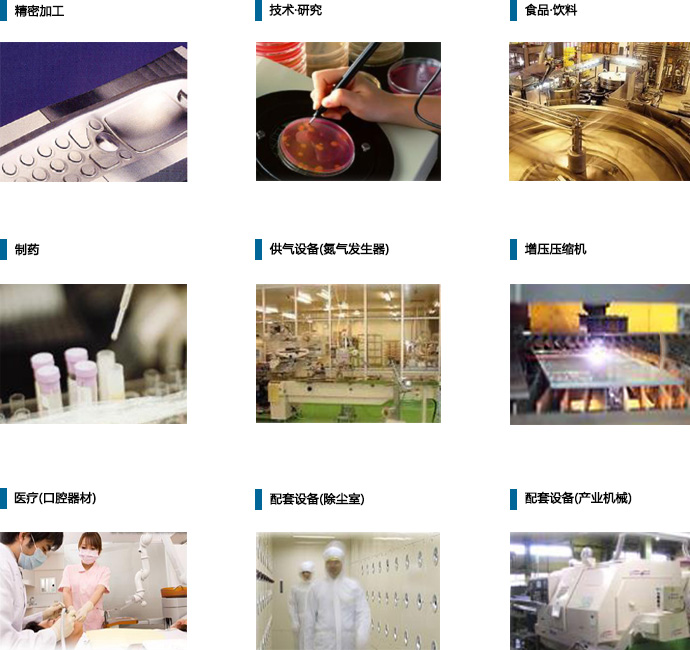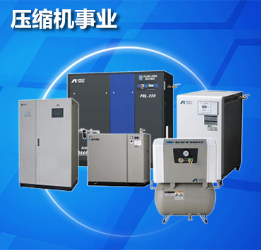 壓縮機事業 隨著無油空氣壓縮機的普及,壓縮空氣不僅用于工業(氣缸·氣動工具·涂裝用氣等),在半導體·食品·醫療·醫藥等行業,其用途也在逐漸擴大。