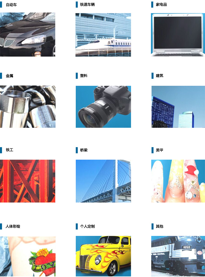 在汽車、家用電器、金屬、塑料、木工、建筑、鐵工、橋梁,乃至美甲等各行各業中均被廣泛使用。