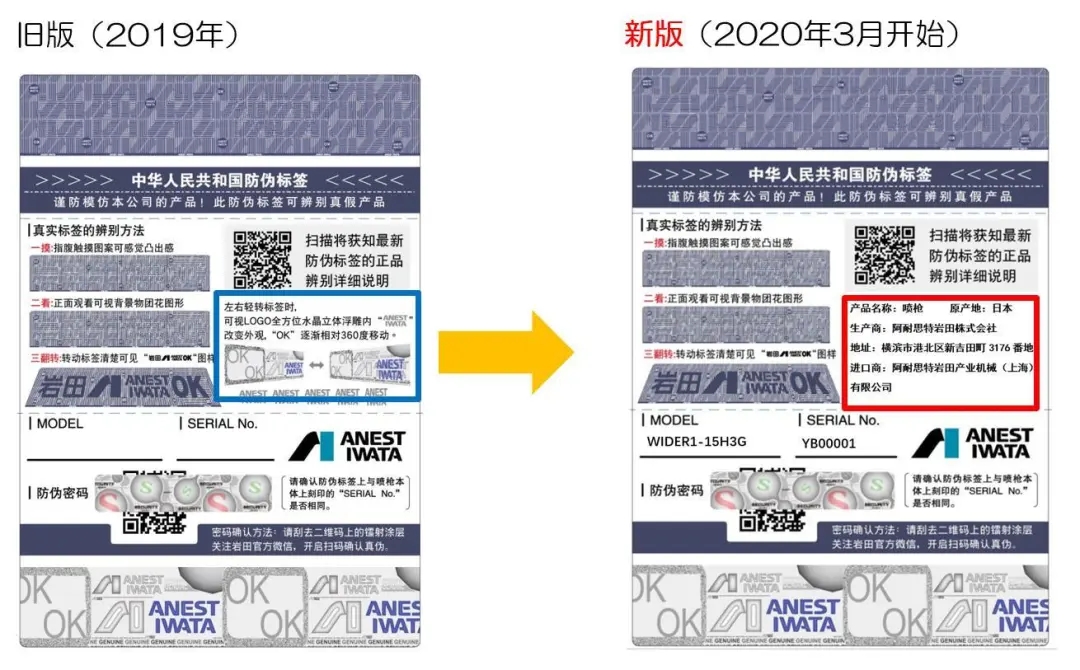 ※新版標簽在中間右側新增噴槍產地等中文信息。
