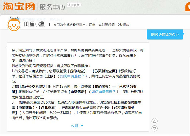 例如:大家常去的某寶網就明確表示購買的產品懷疑是假貨可以退貨。購買的產品確定為假貨,可以退款不退貨。