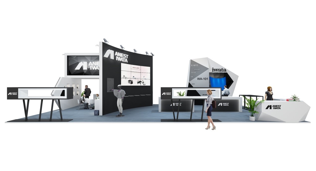 ANEST IWATA展臺(tái)位于W1E20展館,展區(qū)位于醒目部位,占地面積90平方米.