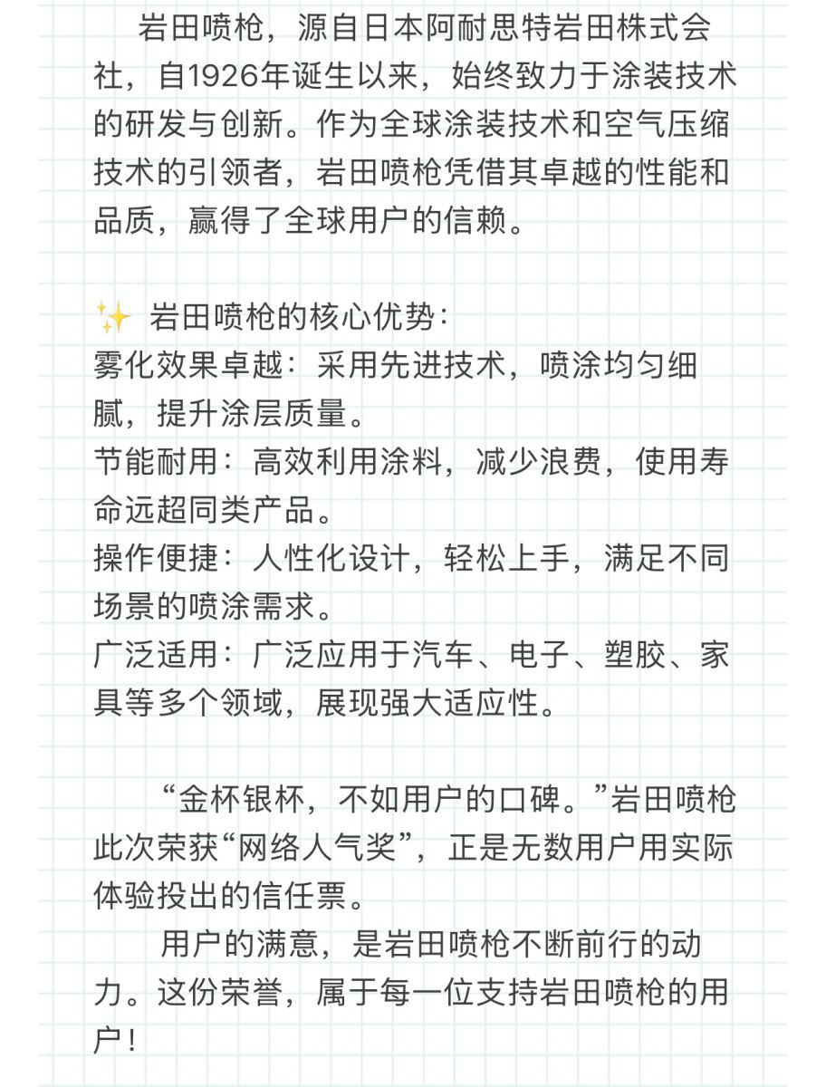 巖田噴槍榮獲“汽車后市場20佳”網絡人氣獎,實力見證口碑!