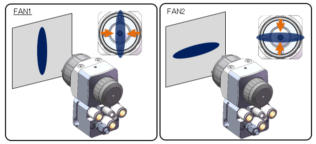 只要切換『FAN1』、『FAN2』的空氣,即可在不改變噴槍姿勢的情況下實現縱橫兩種噴幅方向