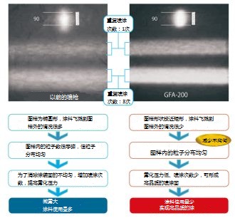 表面。以往的噴槍雖然通用性高,生成粒子直徑也細,但對應(yīng)這種涂料卻不理想。