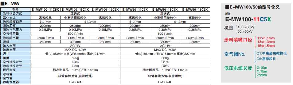 水性小型靜電空氣手動噴槍(外部帶電內部升壓型)E-MW系列(停止售賣)