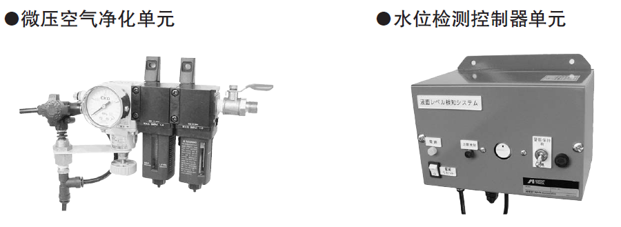 (1)基本原理 從插入水中的檢測管中擠出微量空氣氣泡時,需要有與水位(插入深度)成正比的擠壓力, 高靈敏傳感器檢測此擠壓力(背面),并根據水位控制控水空壓閥的動作,從而是噴房水位 保持在一定范圍內。 (1)主要規格 ①電源:AC200V ②電氣規格:普通 ③空氣壓:0.4-1Mpa ④空氣使用量:5L/min以下