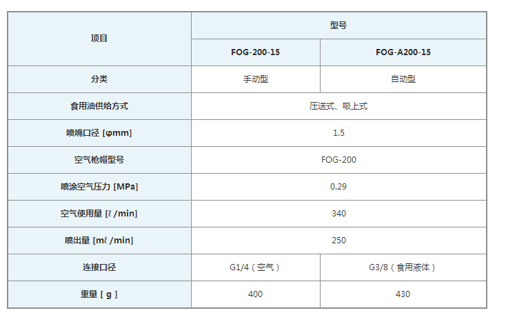 食用液體專用噴槍 FOG-200-15/FOG-A200-15