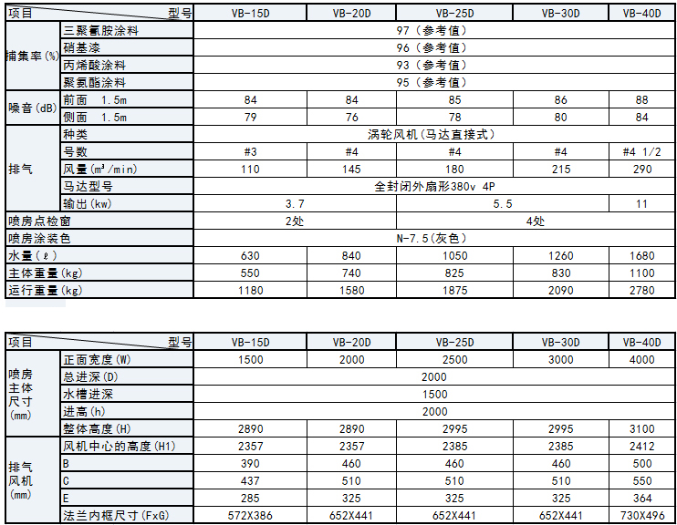 (HOME塗裝機器塗裝設備:塗裝ブースベンチュリーブース VB形性能?寸法(mm))