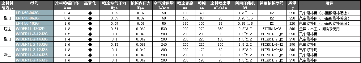 重力式 LPH-50-042G/-062G/-102G ???汽車修補用